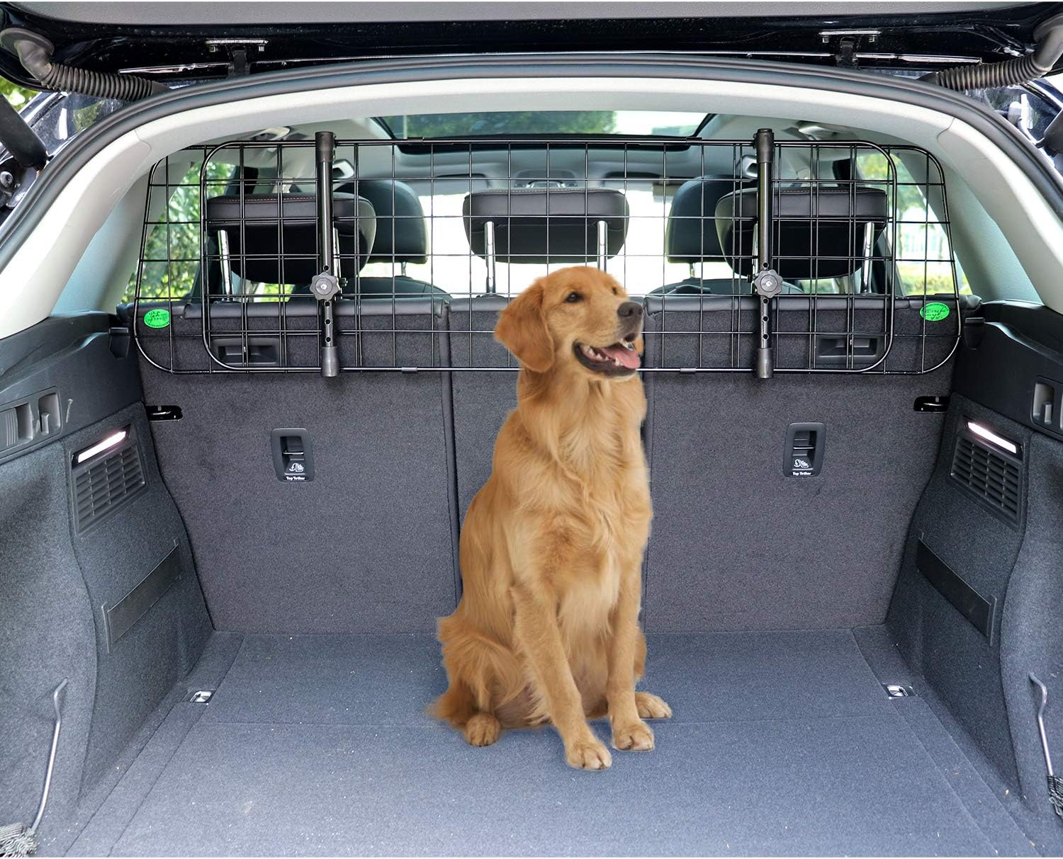 Car pet barriers are sold in different sizes to accommodate different vehicles so always double check. The best pet barrier for an SUV will obviously be different to one designed for a Prius. Pawple Dog Car Barrier for SUVs Cars Vehicles Trucks Adjustable Large Pet Barrier Heavy-Duty Wire Mesh- Universal Fit Vehicles Divider.