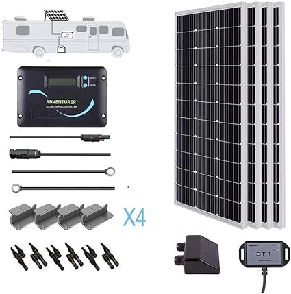 Amazon Com Renogy 400 Watts 12 Volts Monocrystalline Solar Rv Kit Off Grid Kit With Adventurer 30a Pwm Lcd Charge Controller Mounting Brackets Male And Female Connectors Solar Cables Cable Entry Housing Garden