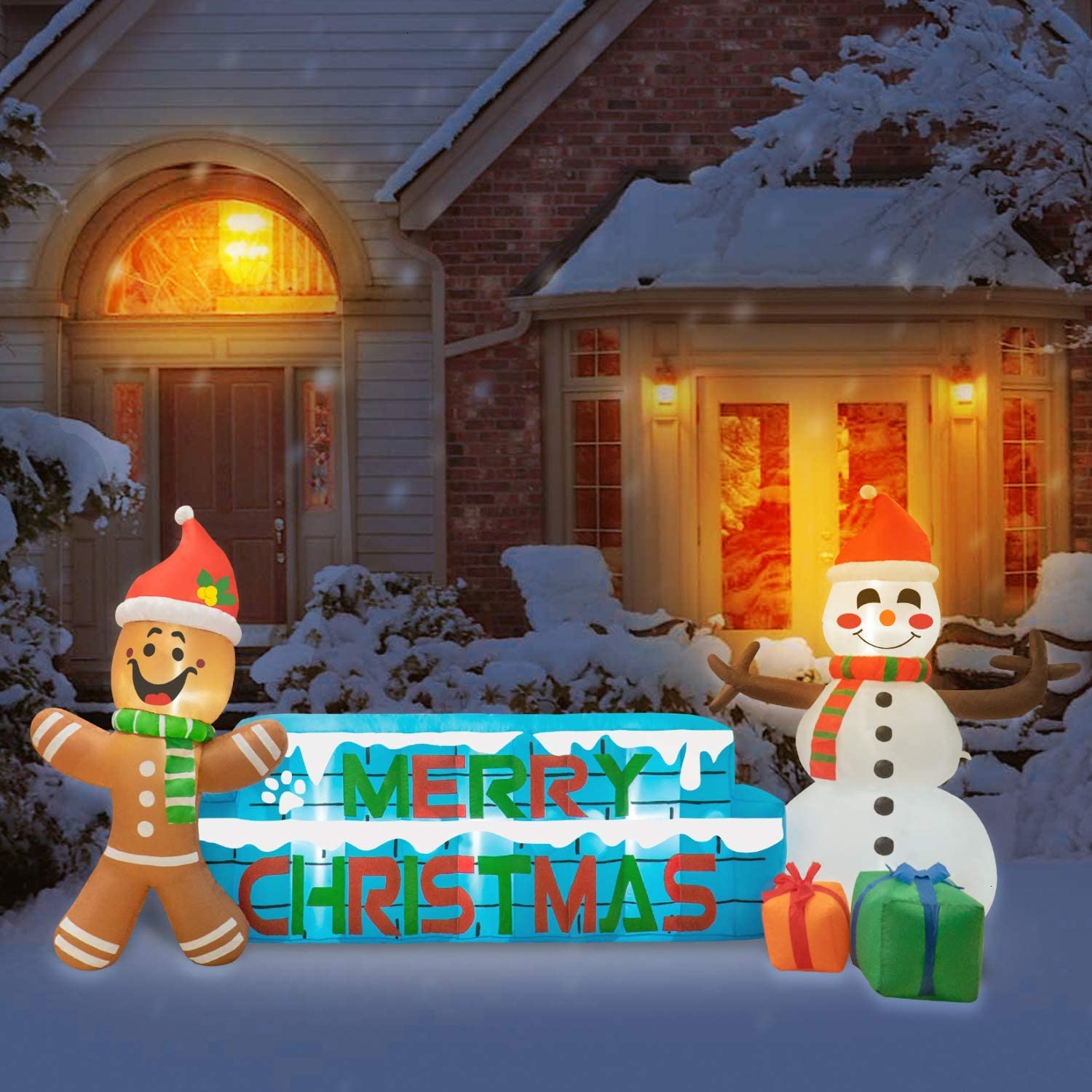 Rocinha 9 Ft Christmas Inflatables Merry Christmas Inflatable Snowman Inflatable Gingerbread Man Christmas Blow Up Yard Decorations With Build In Led Lights Walmart Com Walmart Com