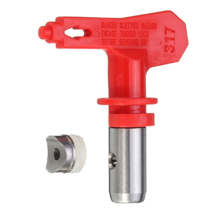5 rows Many paint manufacturers will specify recommended spray tip sizes on the container or product. Save 5 with coupon. A basic rule of thumb is to use small tip sizes such as 0009in 0011in 0013in for thin low viscosity materials such as stains lacquers medium tip size such as 0015 0017 0019 for.