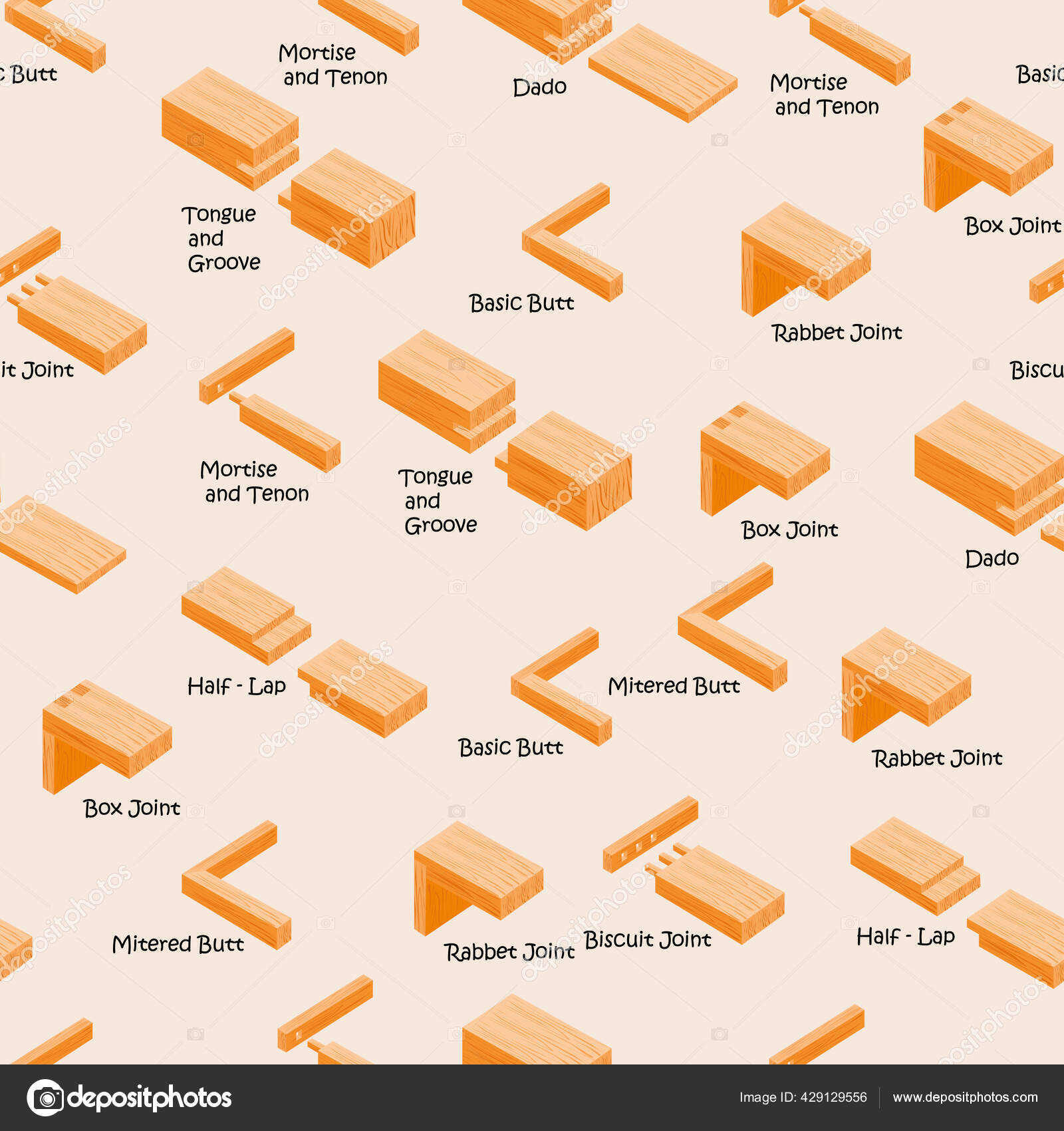 Types Wood Joints Joinery Industrial Vector Seamless Pattern Vector Image By C Mr Ptica Vector Stock 429129556
