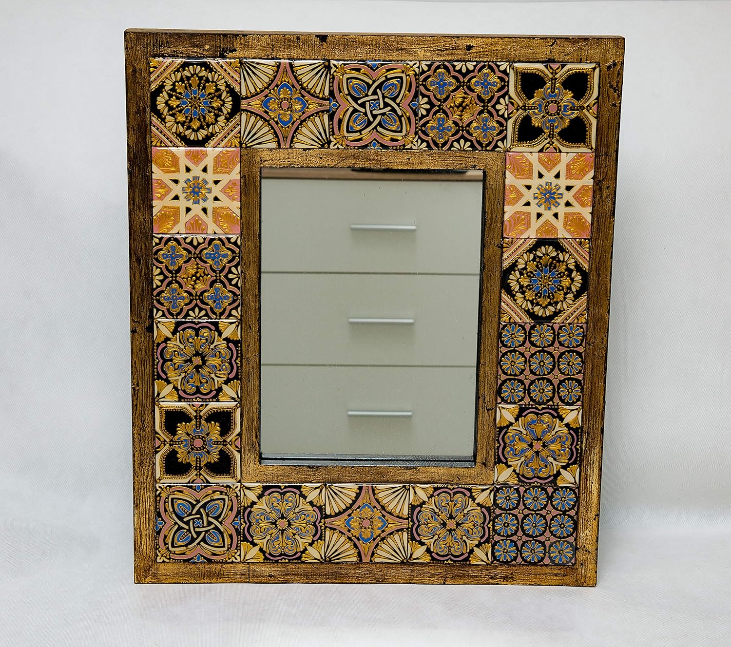 Mexican Tile Mirror Bohemian Mirror Mexcican Tile Mosaic Mirror Mexican Talavera Tile Talavera Mirror Art Deco Wall Mirror Wall Art. This beveled rectangular mirror is beautifully framed in stepped beveled mirror tiles that add a dramatic accent to a staple wall decor piece. Look through tile framed mirror pictures.